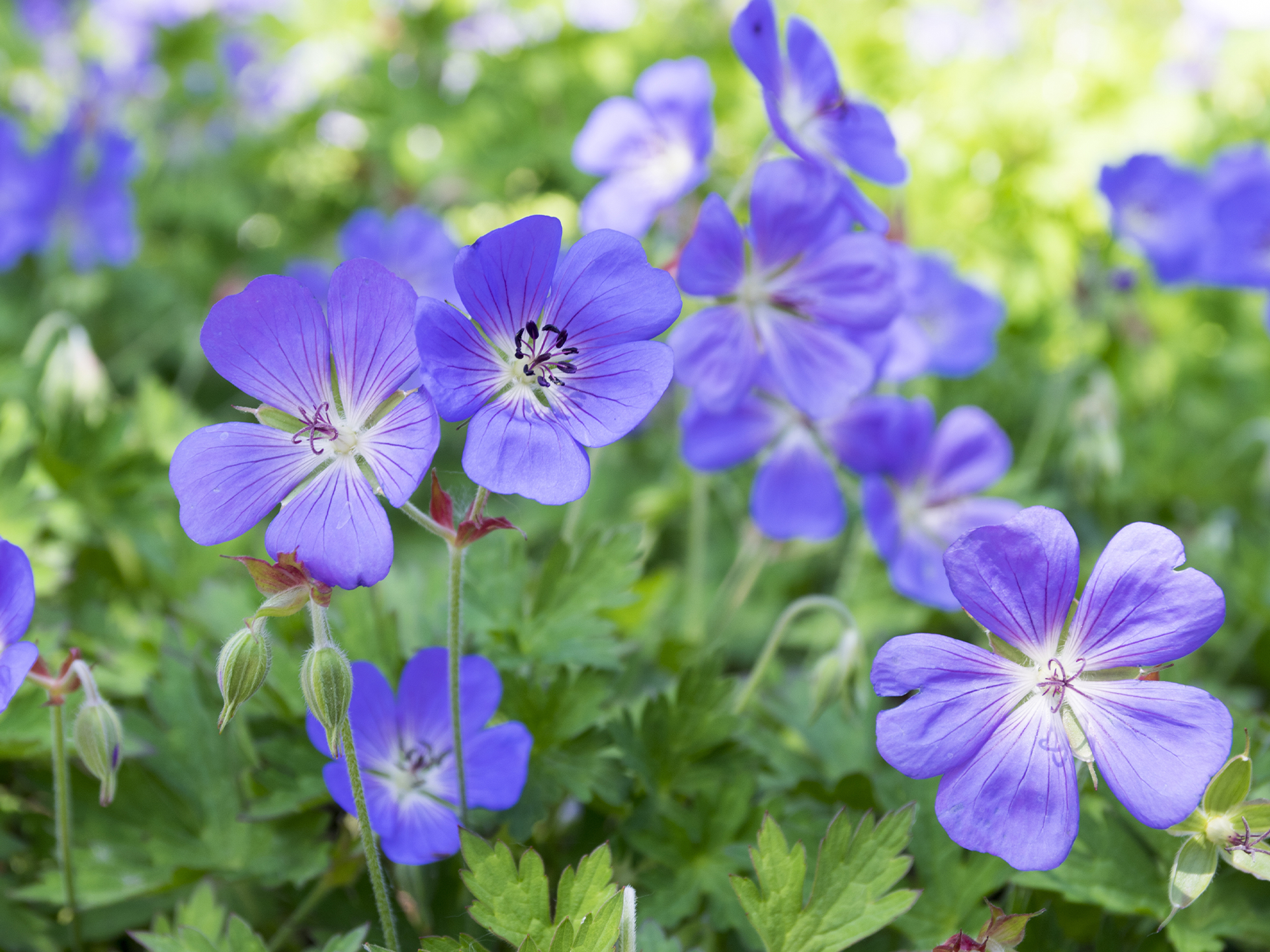 Violetblauwe bloem, 40-50 cm, bloeit mei-oktober, bladverliezend, zon & halfschaduw, normale bodem - Geranium sanguineum: