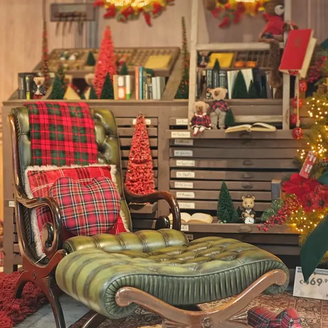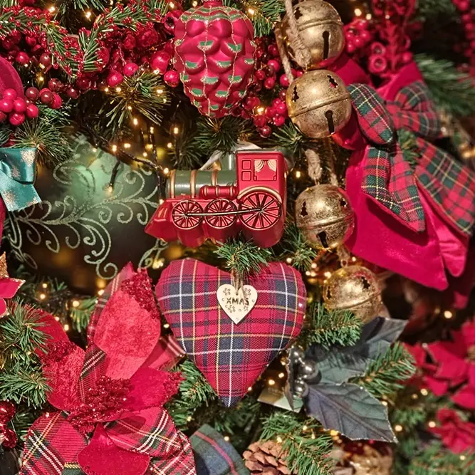 De Scottish Highlands combineren het klassieke rood en groen met gezellige ruitjes en warme berenfiguren, waardoor een knusse en charmante kerstwereld ontstaat. Overal in dit thema vind je speelse en vrolijke details die de ruimte omtoveren tot een gezellige winterbestemming.