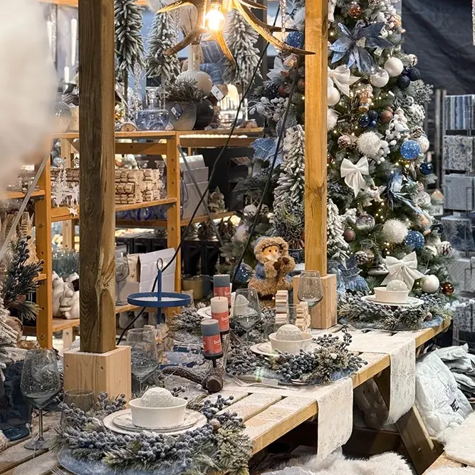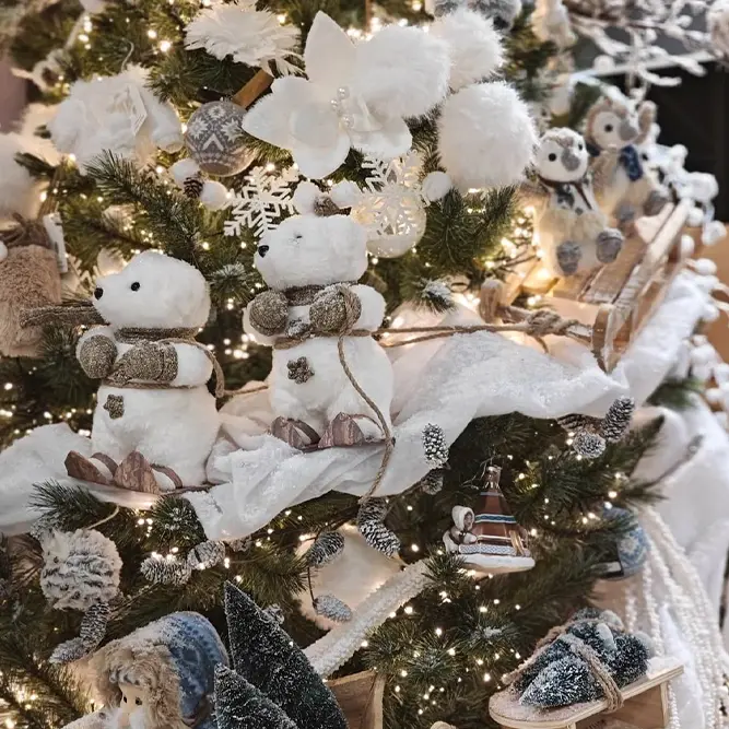 Frisse tinten van winterwit en nachtblauw combineren met warme accenten van espresso en bont, waardoor een perfecte balans ontstaat tussen koelte en knusheid. Teddy’s droomwereld weerspiegelt de charme en magie van het hoge noorden, en dit thema laat zien hoe winterse kerstdecoratie je interieur kan transformeren tot een sfeervolle, betoverende kerstwereld