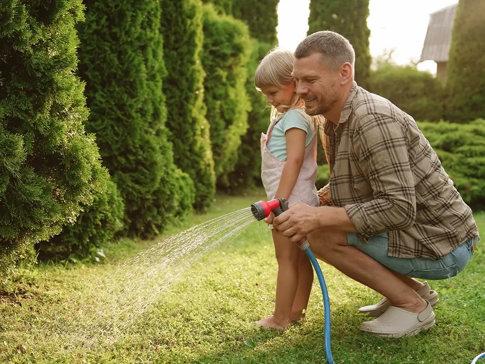 Water is kostbaar, zeker in de zomer. Geef je planten bij voorkeur 's ochtends of 's avonds water om verdamping te beperken. Een druppelsysteem en automatische sproeiers helpen om efficiënt water te geven op de meest duurzame momenten. Gecombineerd met een regenton maak jij deze zomer op een eenvoudige, milieubewuste manier gebruik van het voorradige (regen)water en ziet je tuin er ongetwijfeld stralend uit!